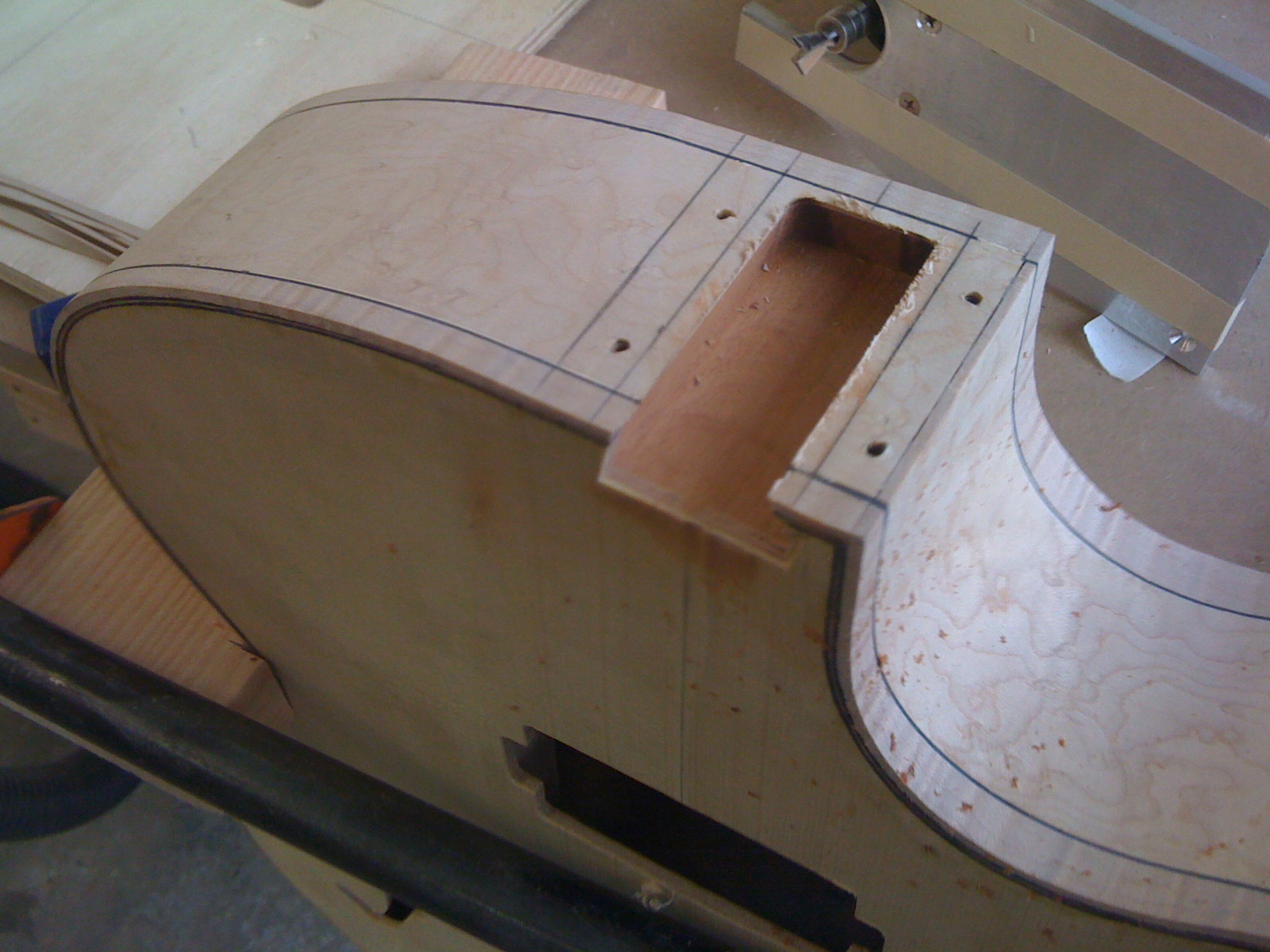 February 27, 2010 Custom laminate archtop project Birdseye Laminate Model 16- Neck Roughing and Body Mortise « Custom laminate archtop projectCustom laminate archtop project »Share on: •Facebook•Twitter•Pinterest