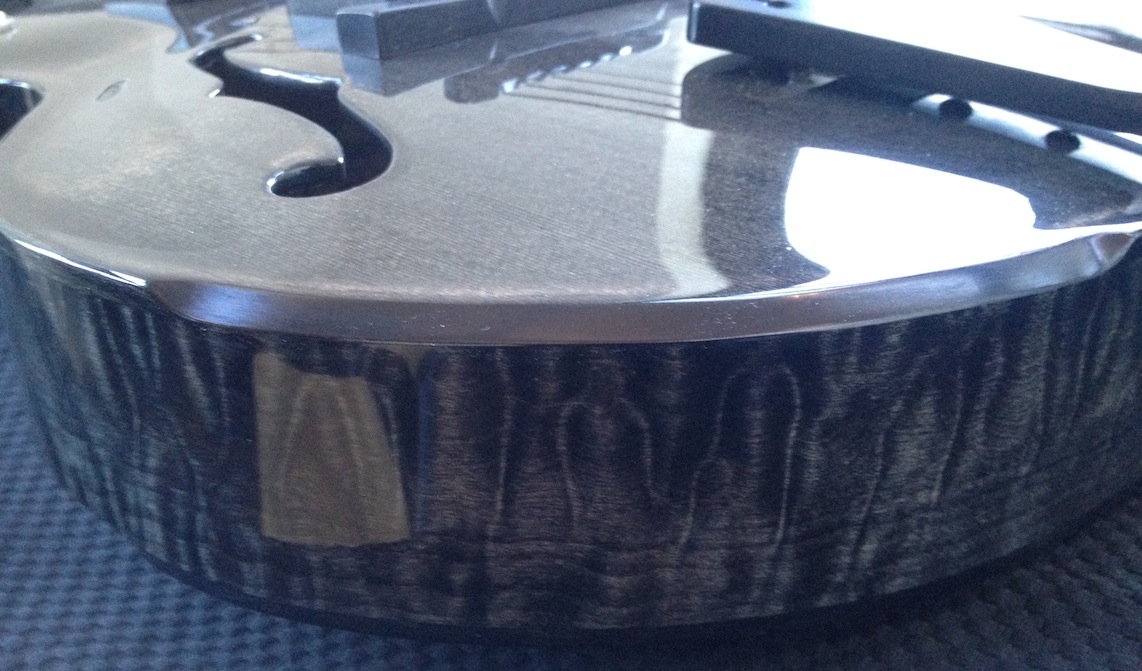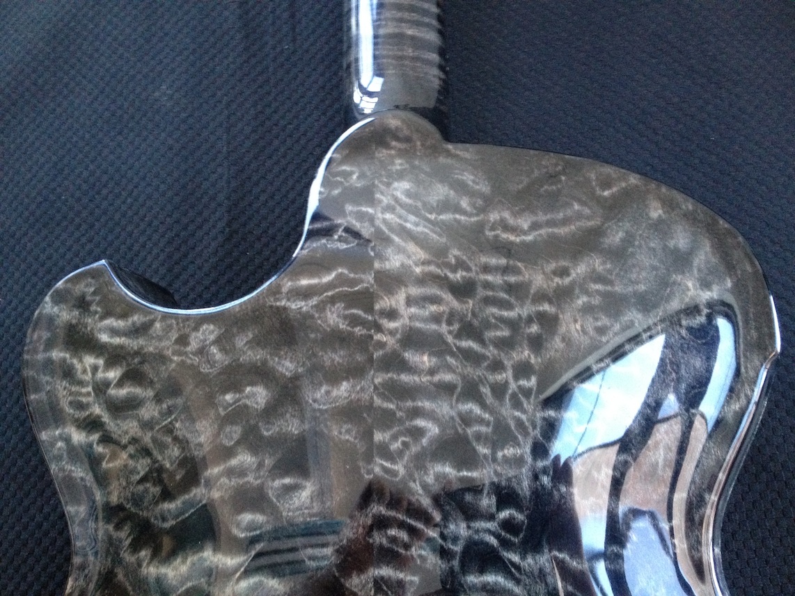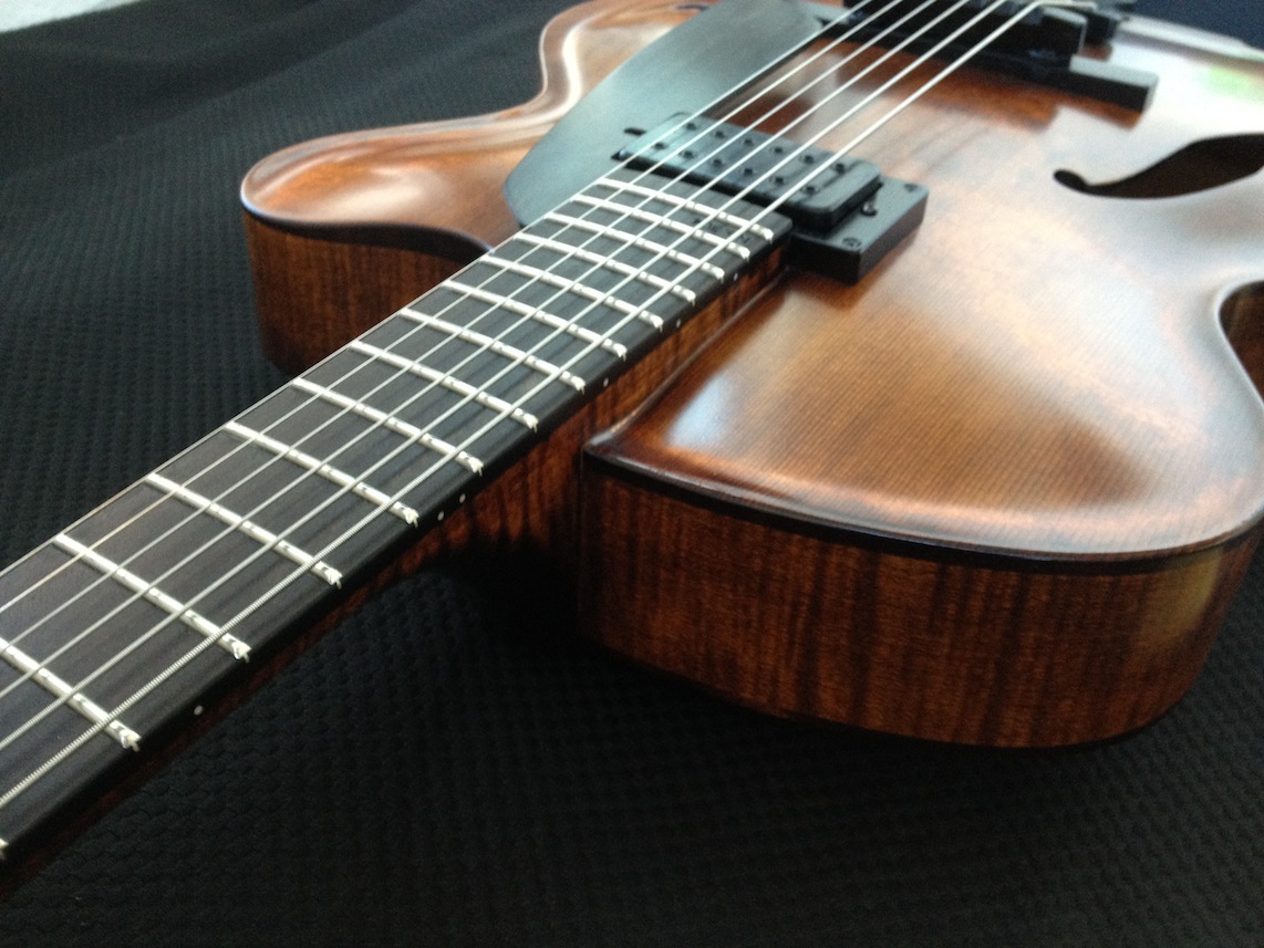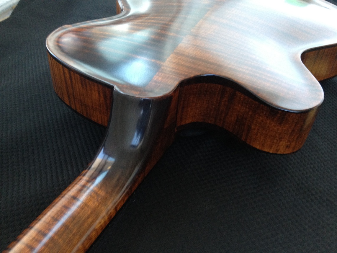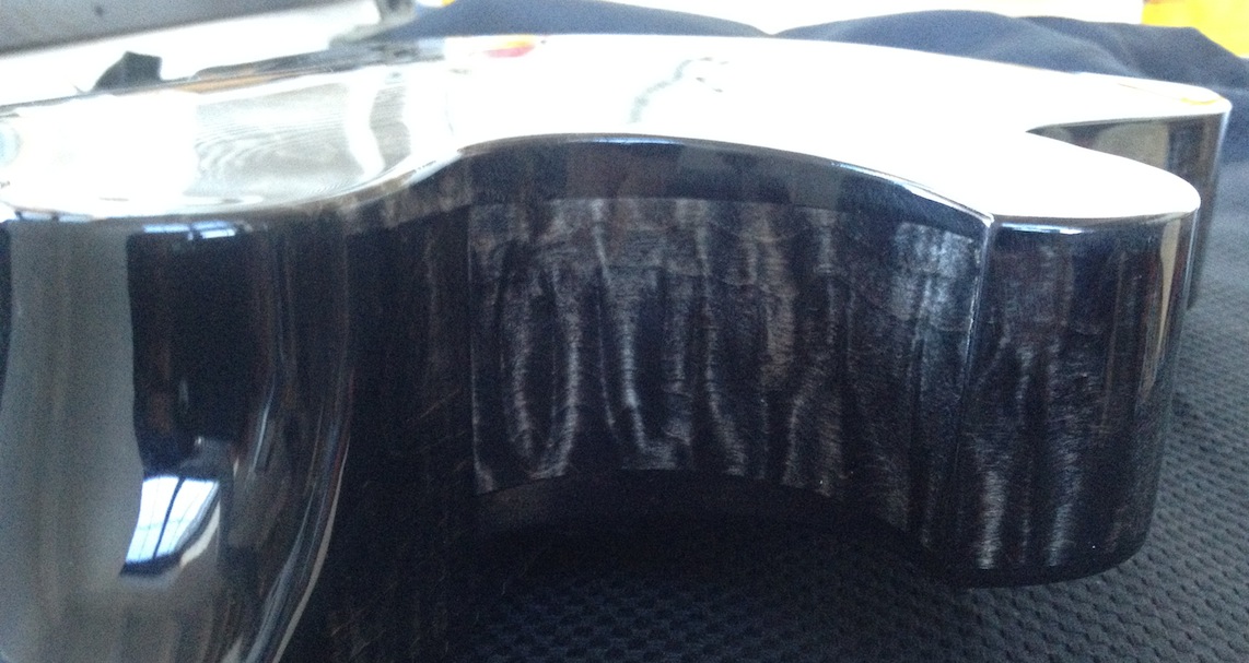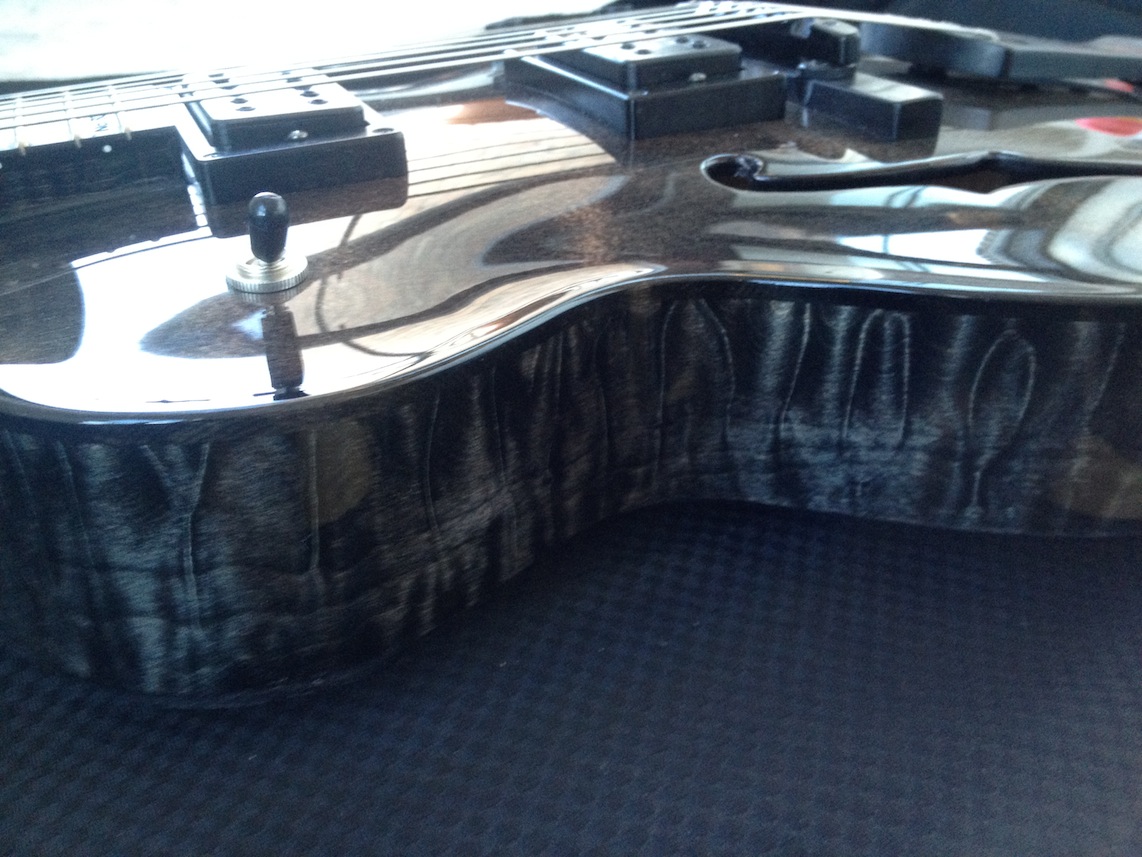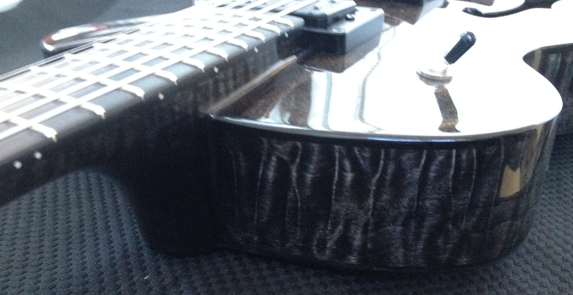 These guitars are for my clients Donato and Patrice who are return customers (this is their 2nd VB each). I’ve been tweaking and adjusting, playing and polishing. Serious fun! Both are great guitars I will be sad to see them go haha! Here’s some quick iphone pics of them both: