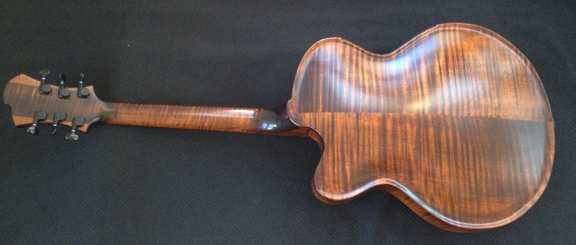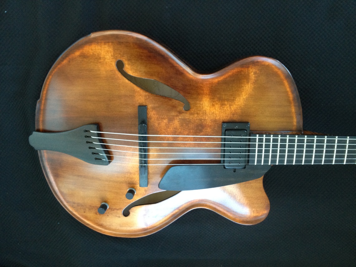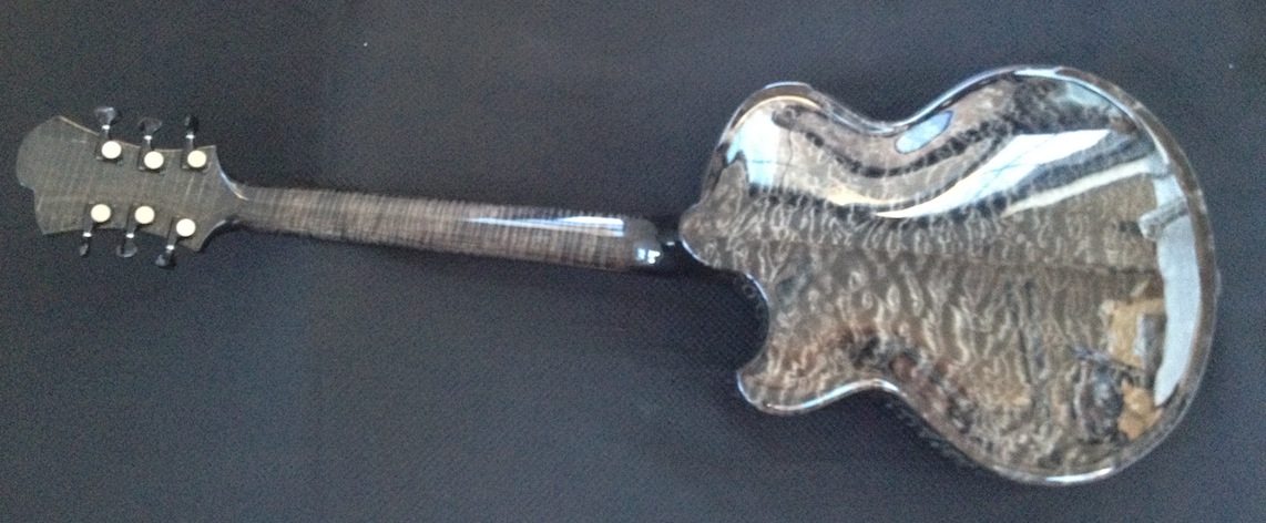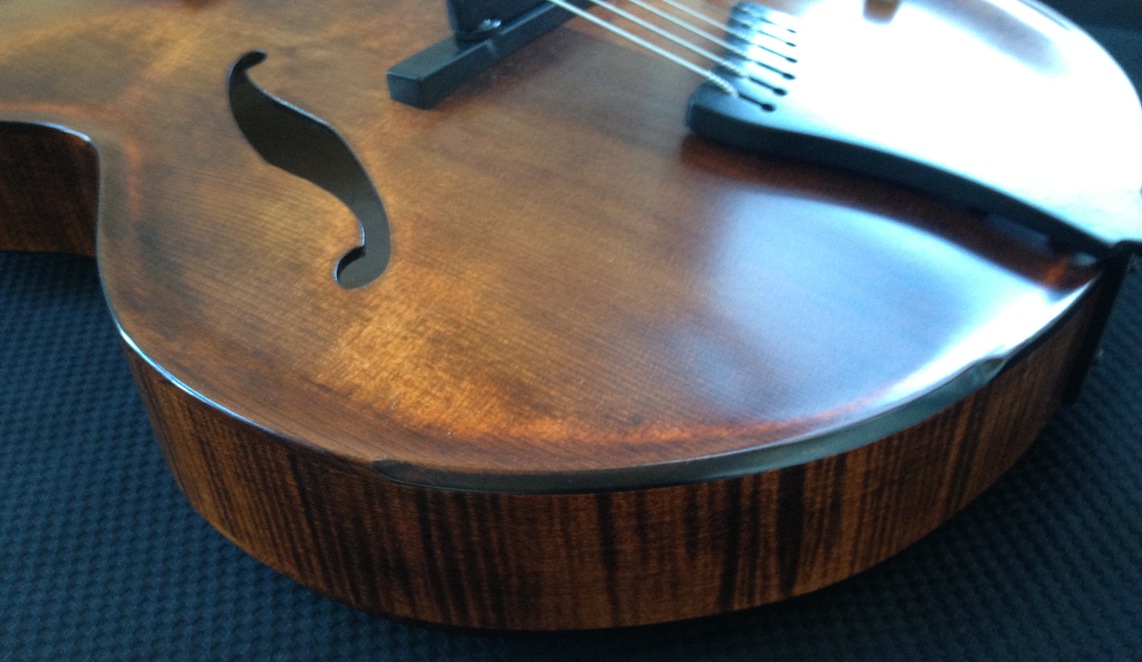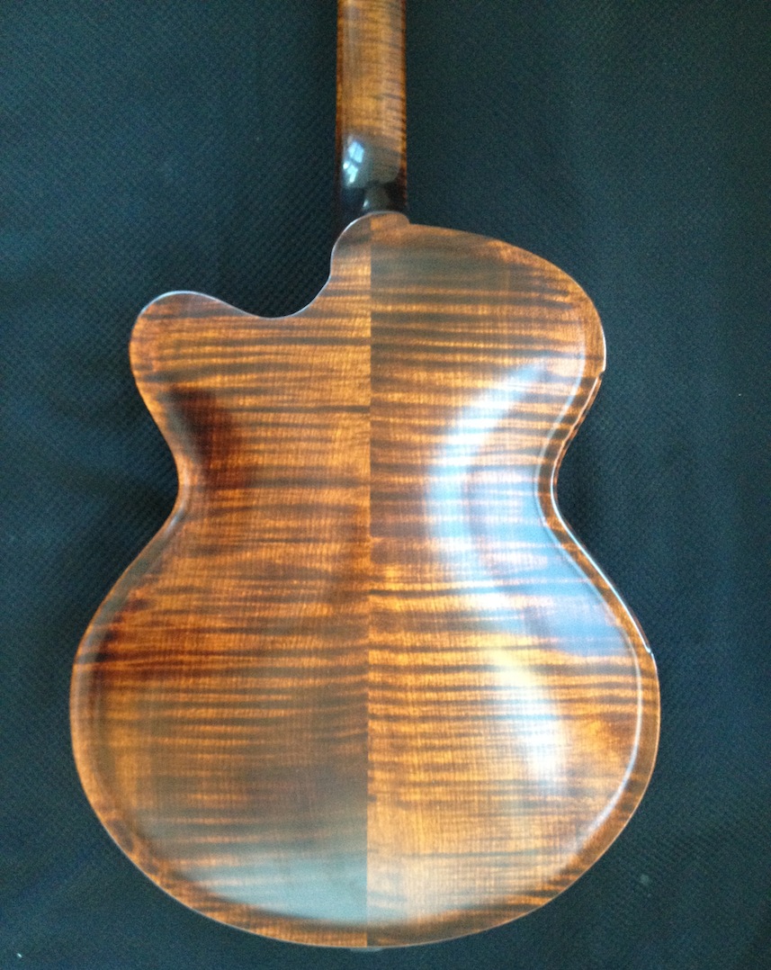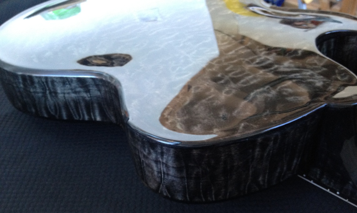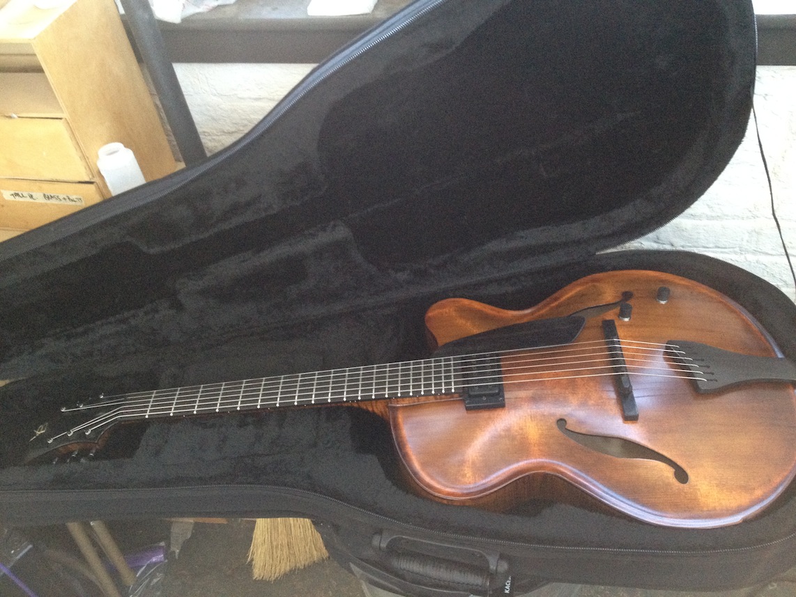 These guitars are for my clients Donato and Patrice who are return customers (this is their 2nd VB each). I’ve been tweaking and adjusting, playing and polishing. Serious fun! Both are great guitars I will be sad to see them go haha! Here’s some quick iphone pics of them both: