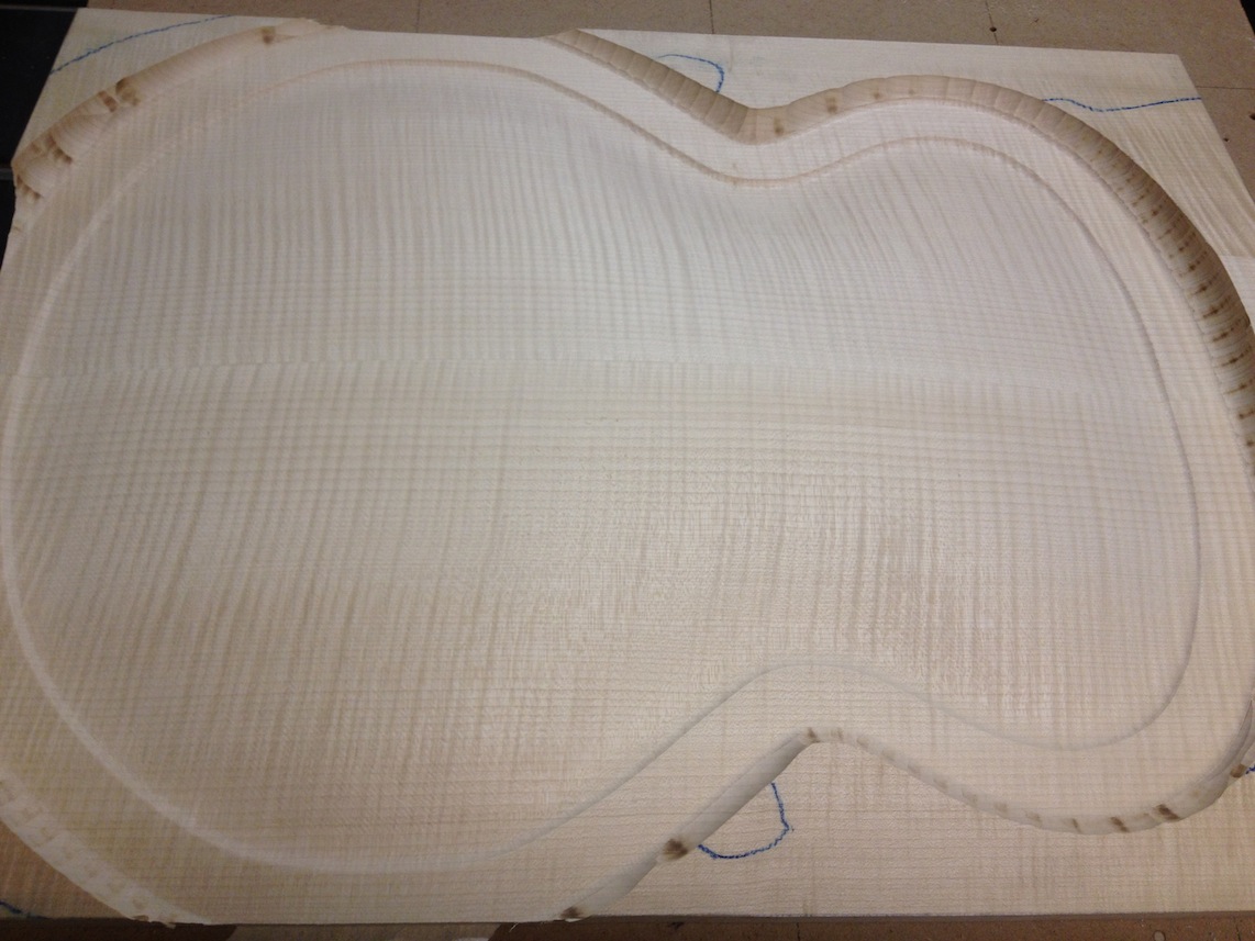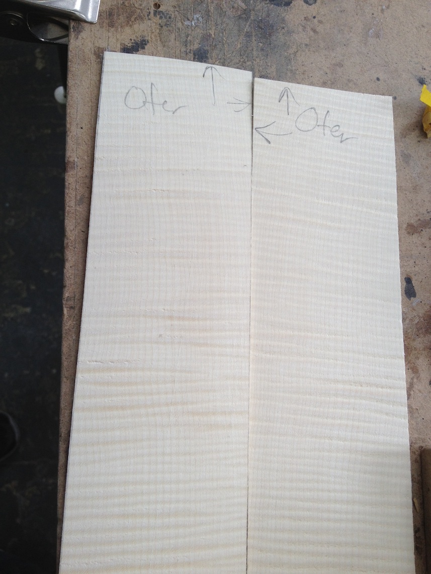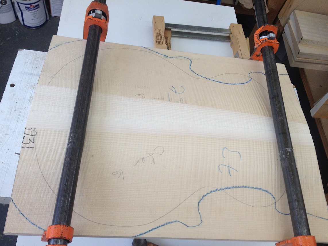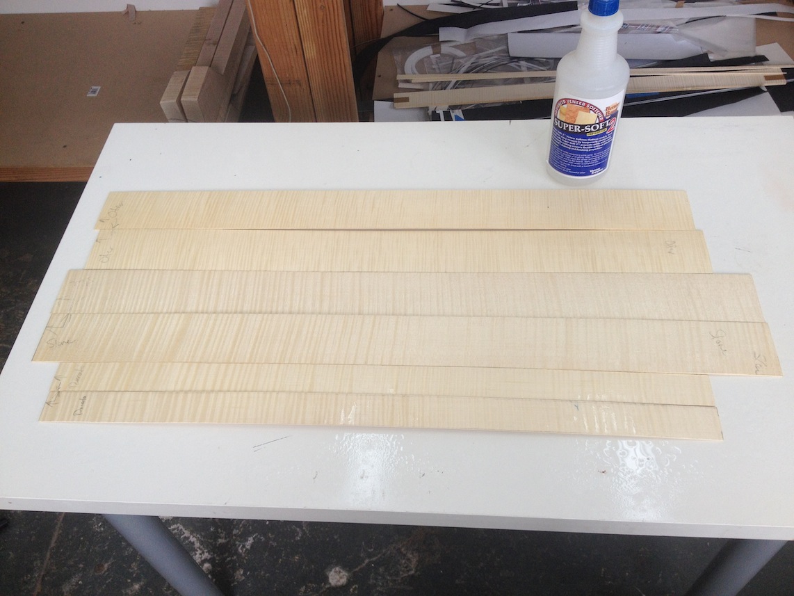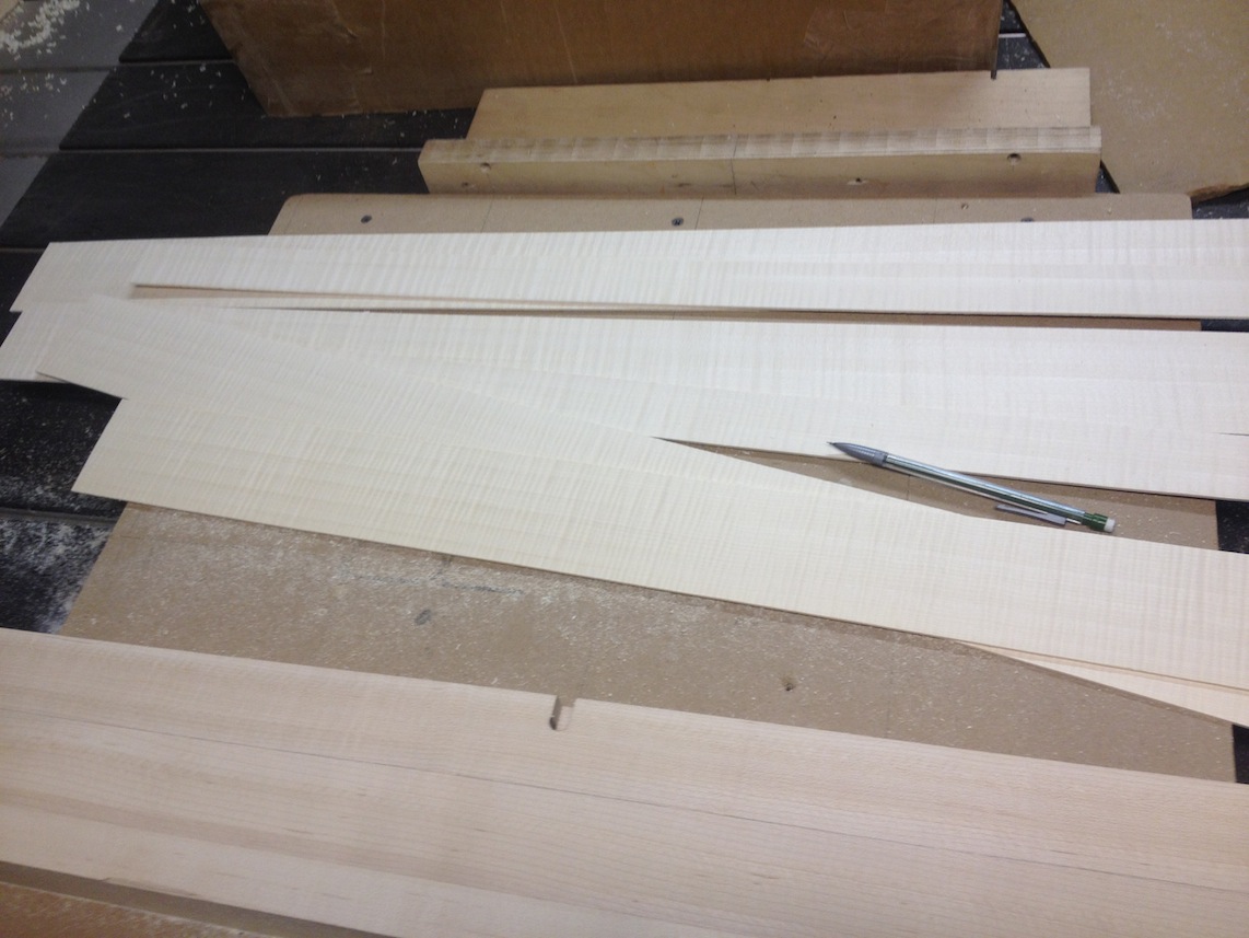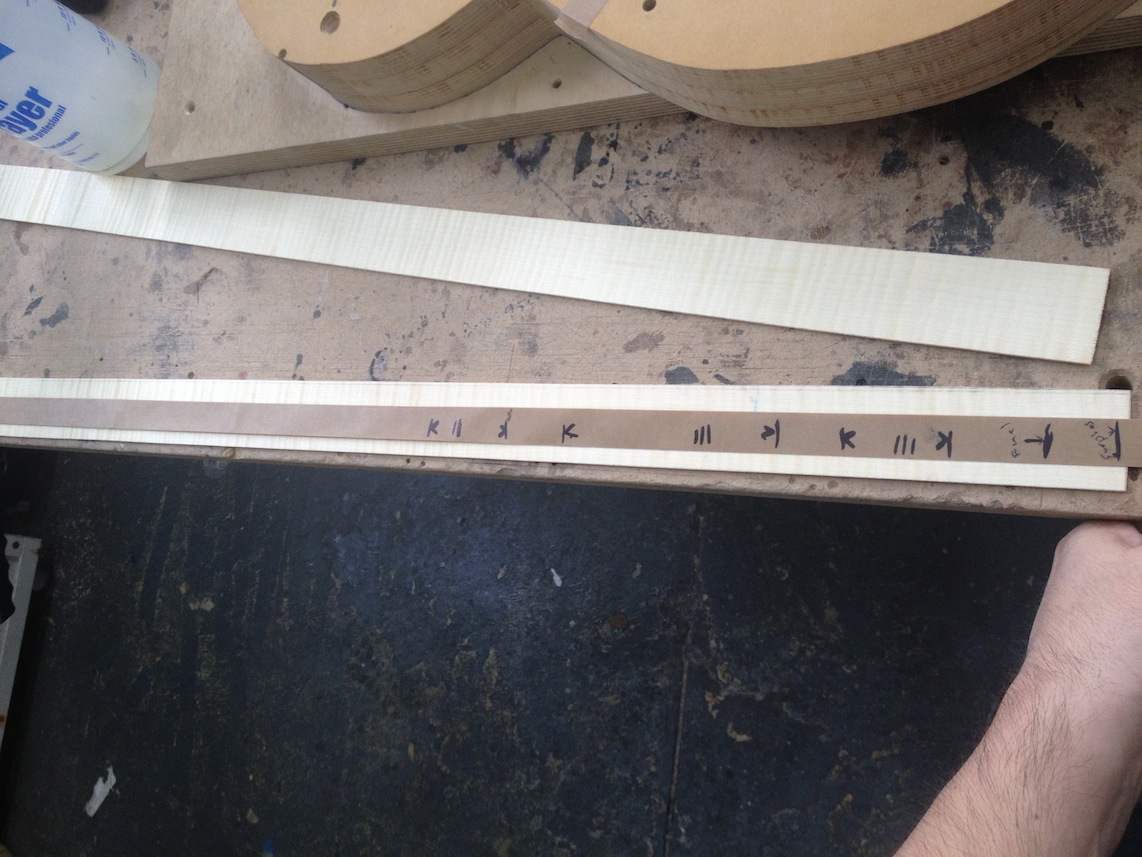 My other guitars in progress are in Patrick’s hands at the moment for clear coats, he’s doing great-they are turning out fantastic (see below). So in the interim i put some time in on the roughing work on my next guitars. Some interesting stuff here- A thinline model 15 for Donato Soviero, a Model 16 for Ofer Shalmon and a BIG model 18 Super 400 size guitar for Jonathan Slone. Ive been working on a lot of smaller 14″ guitars recently so doing a monster 18″ guitar is a real change of pace and super fun. Donato’s guitar will have an earthy finish like my other projects. Ofer’s will have an amber burst and the big 18 will have a decked out D’Angelico vibe. All great looking european cello woods throughout, the 16 and 18 will have full maple binding. Smokin!! Can NOT wait to play em.