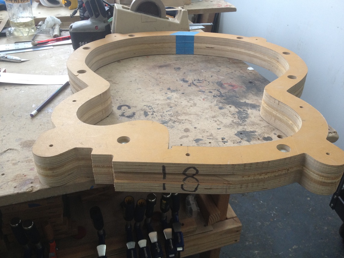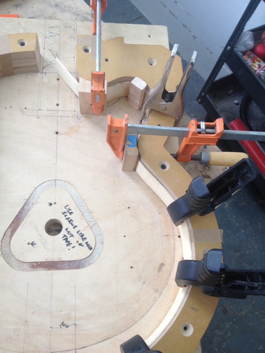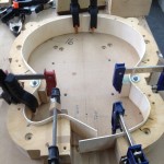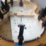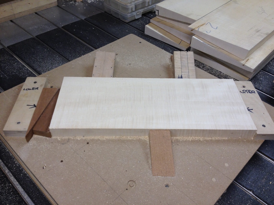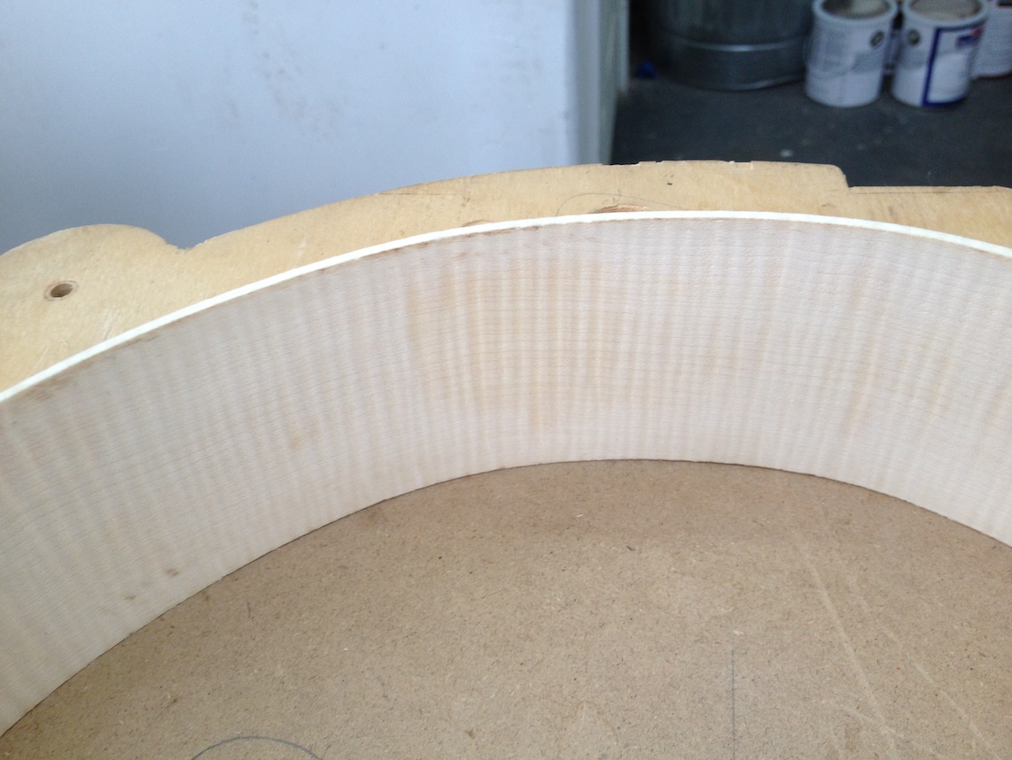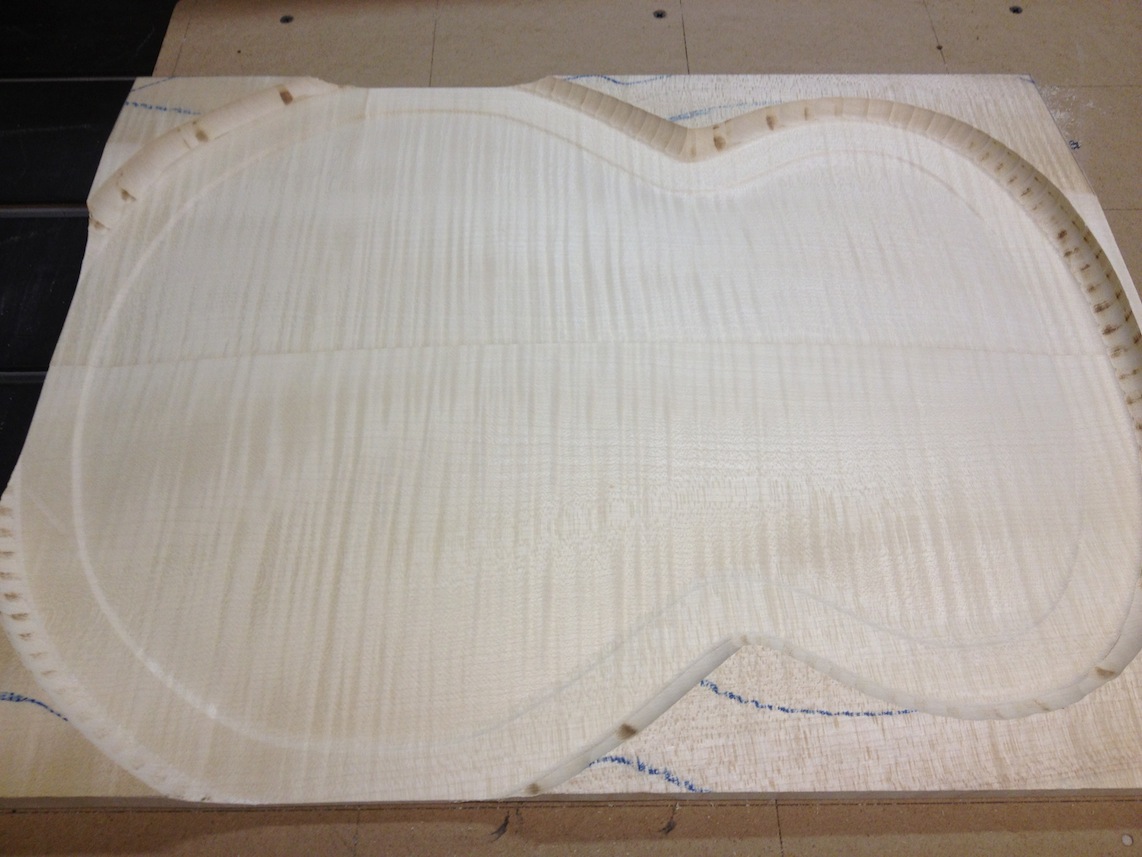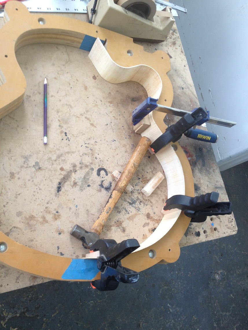 My other guitars in progress are in Patrick’s hands at the moment for clear coats, he’s doing great-they are turning out fantastic (see below). So in the interim i put some time in on the roughing work on my next guitars. Some interesting stuff here- A thinline model 15 for Donato Soviero, a Model 16 for Ofer Shalmon and a BIG model 18 Super 400 size guitar for Jonathan Slone. Ive been working on a lot of smaller 14″ guitars recently so doing a monster 18″ guitar is a real change of pace and super fun. Donato’s guitar will have an earthy finish like my other projects. Ofer’s will have an amber burst and the big 18 will have a decked out D’Angelico vibe. All great looking european cello woods throughout, the 16 and 18 will have full maple binding. Smokin!! Can NOT wait to play em.