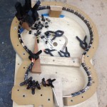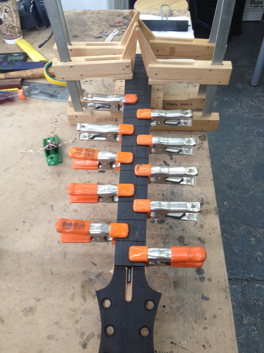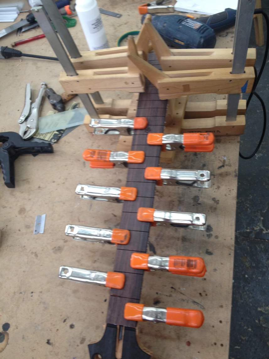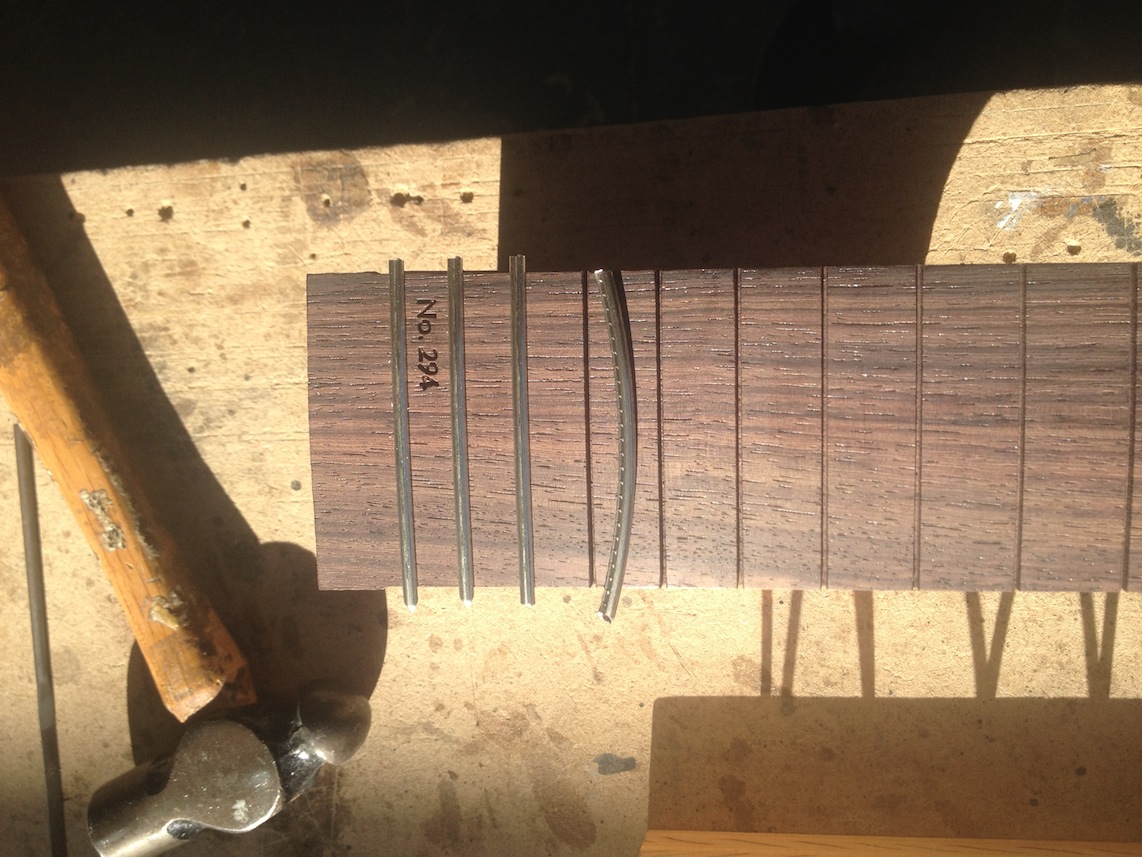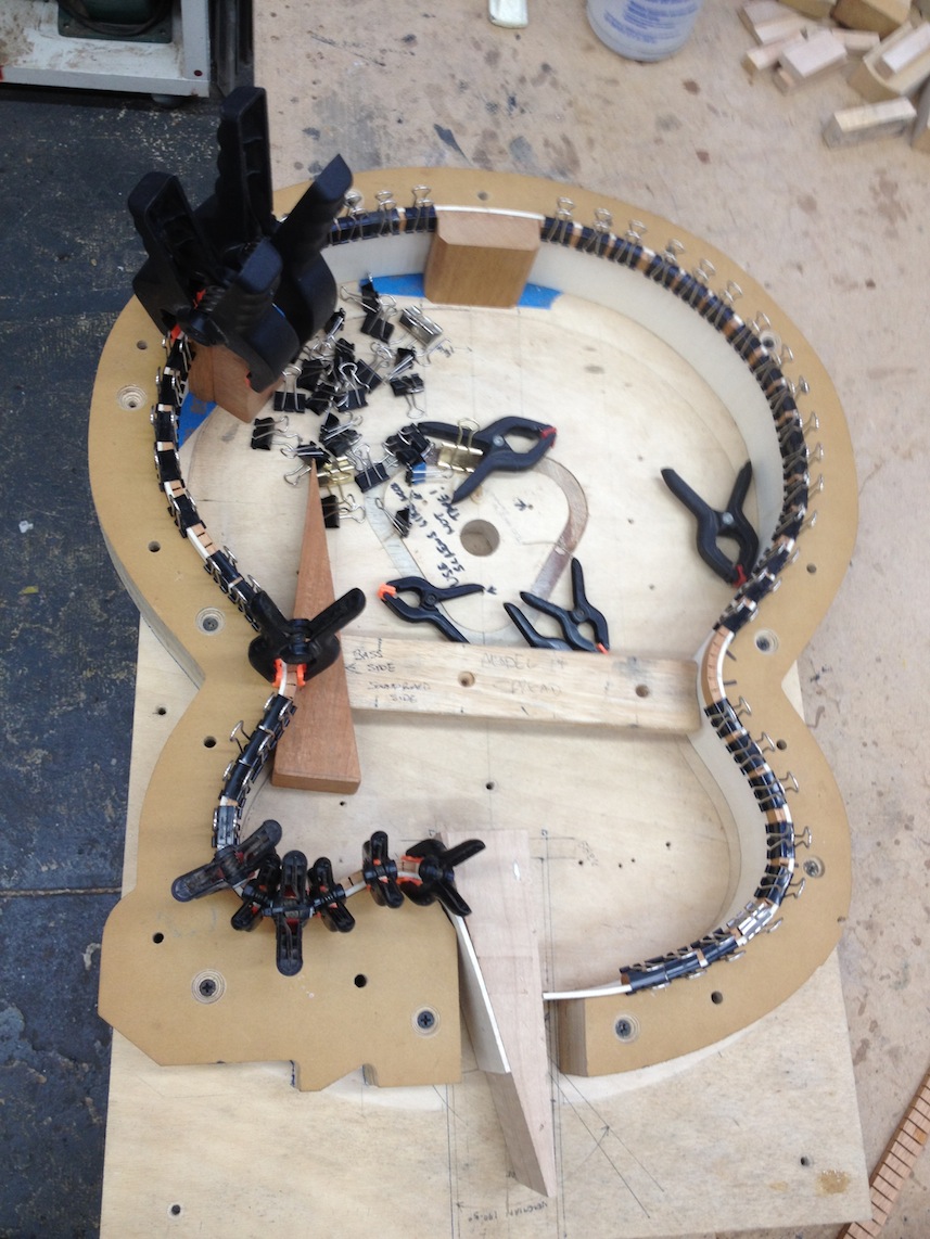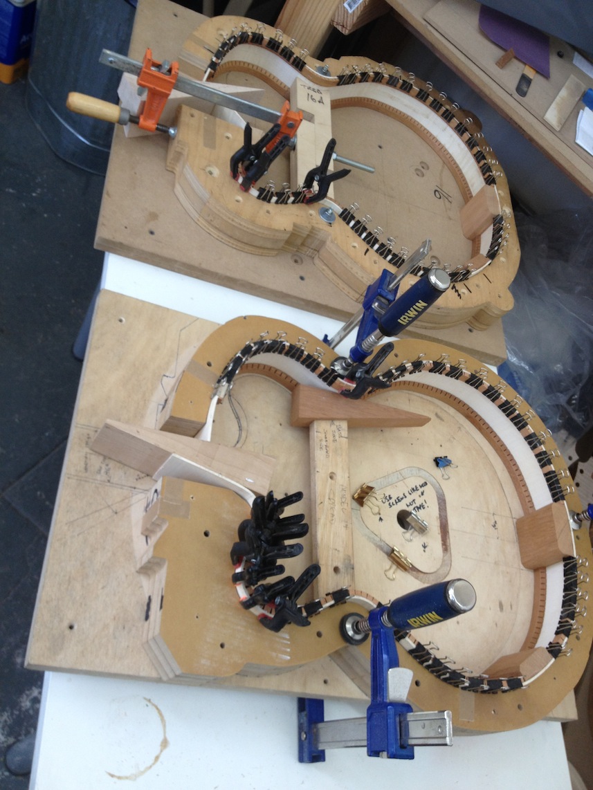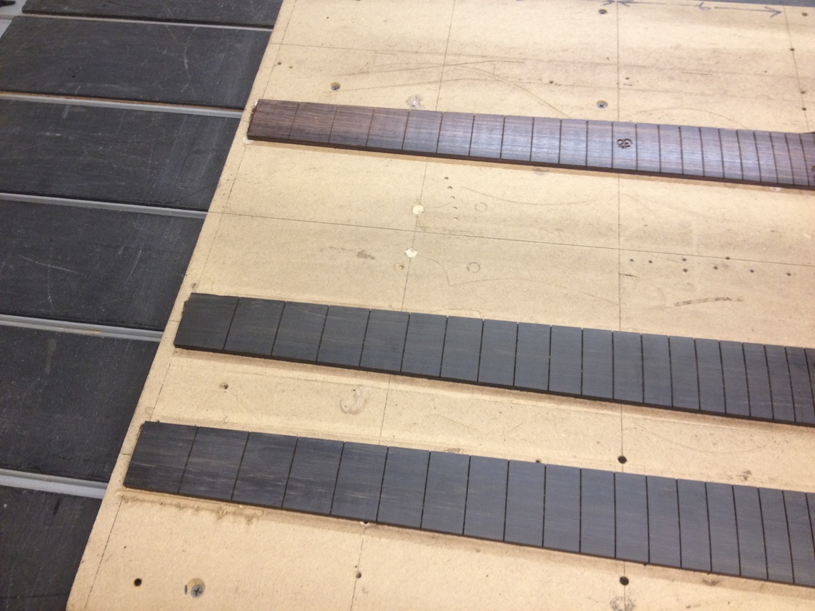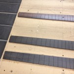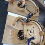 Continued work on these projects. Some cool stuff to see is the OM inlay for Gilad’s fretboard, serial engraving, side bending, etc. Check out the deep earthy staining!