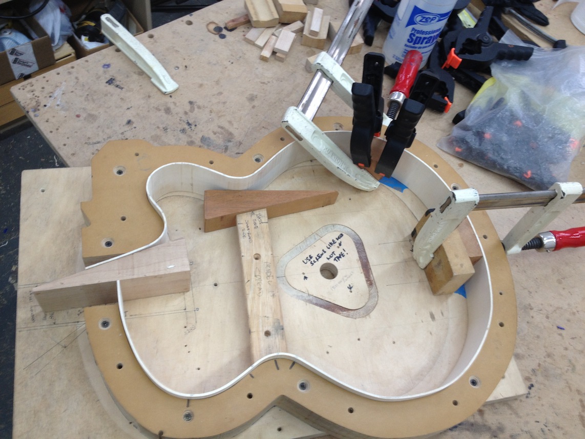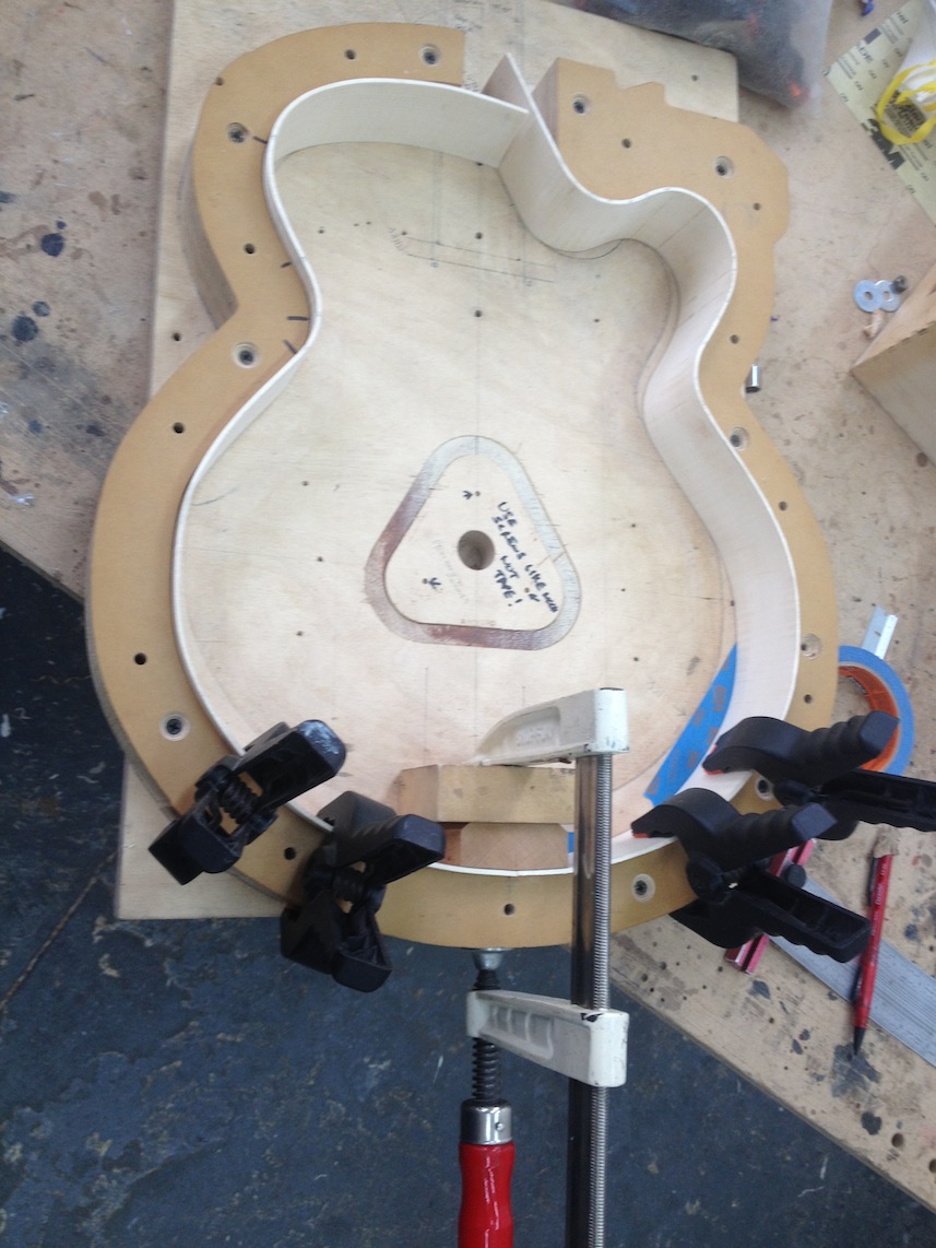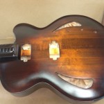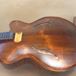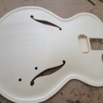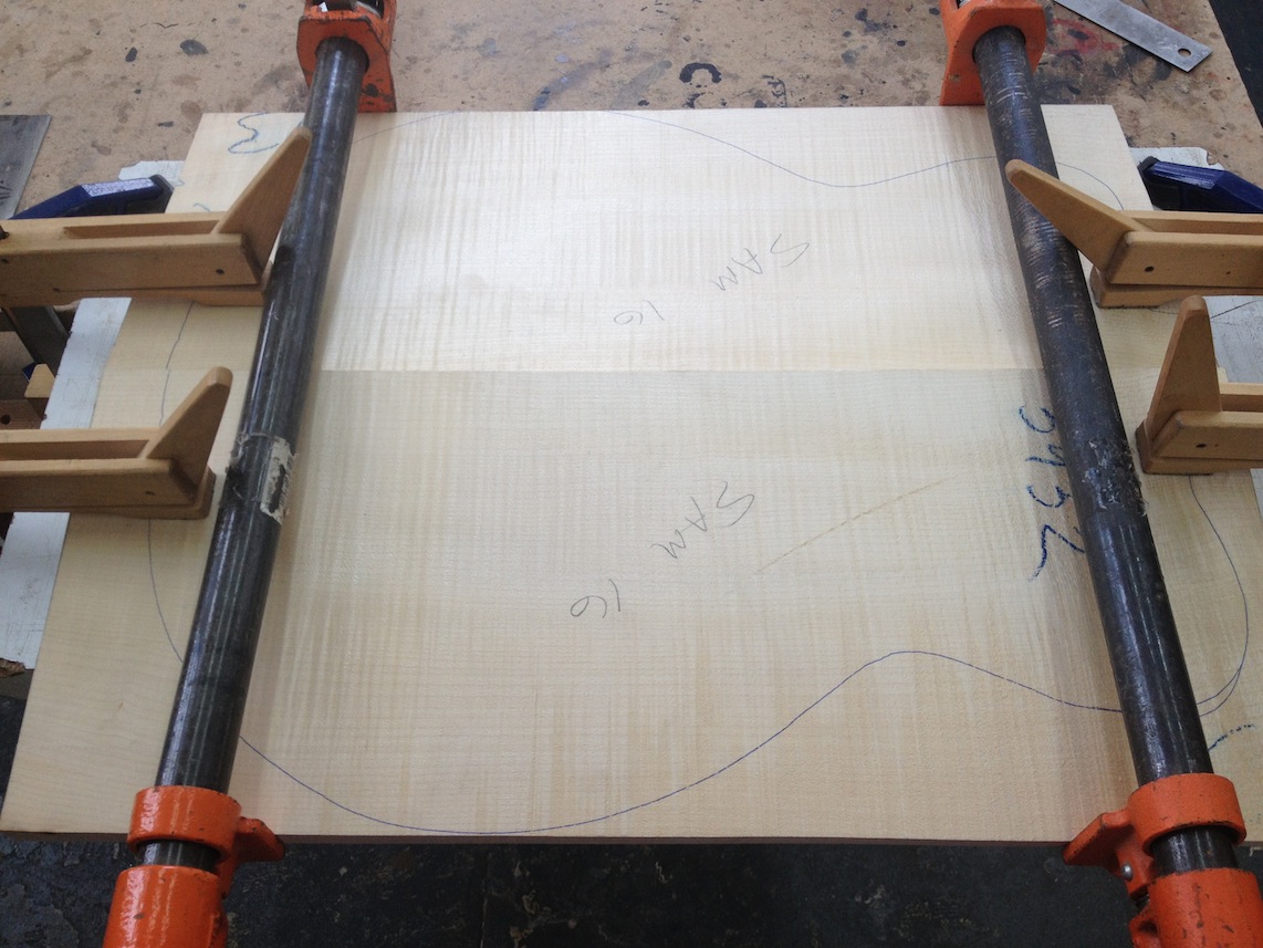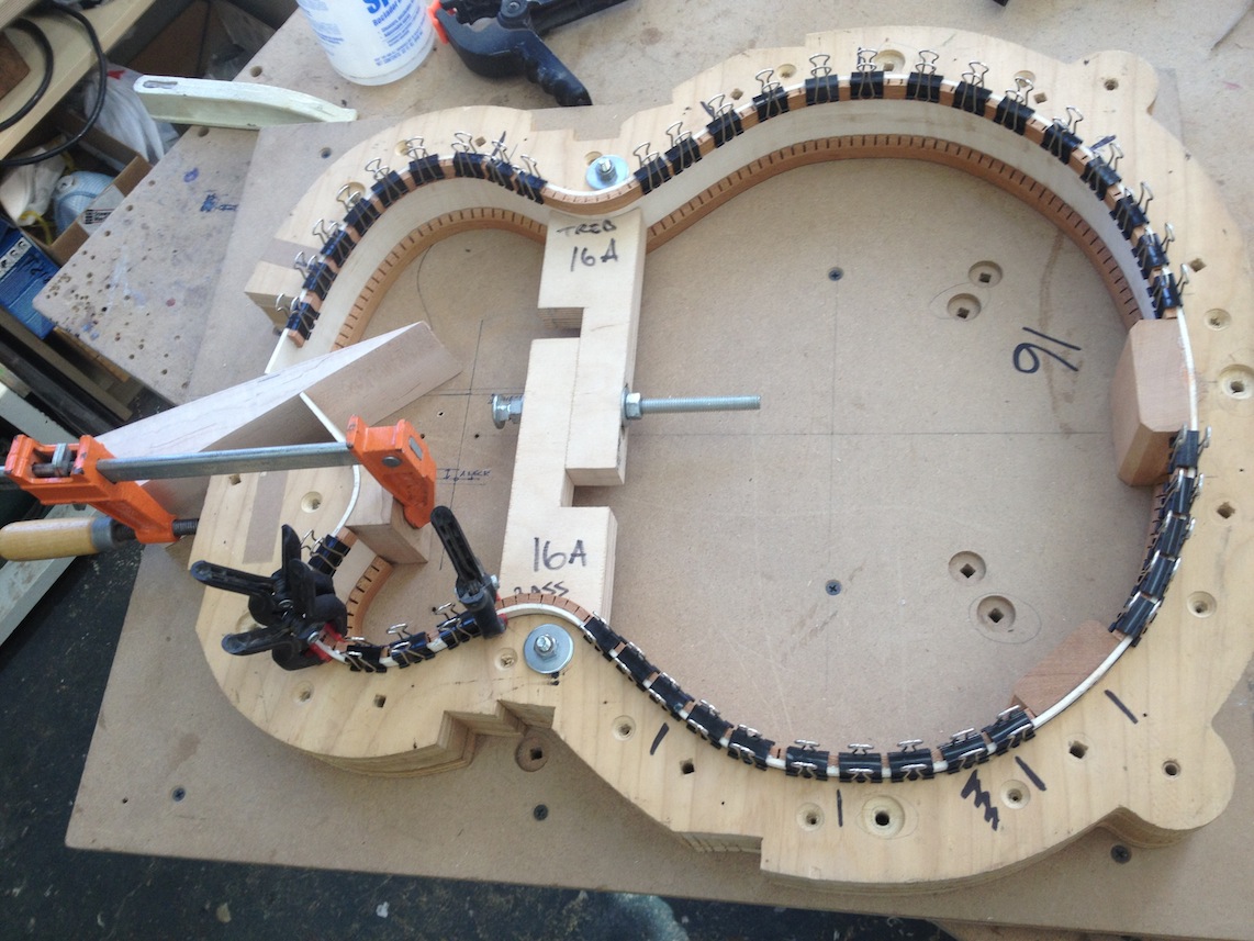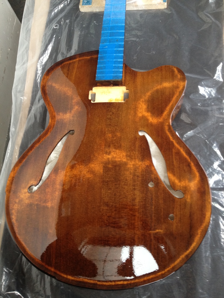 I’m using really fine European cello tonewood here throughout. During carving I ran into a hidden defect on Gilad’s backplate. We talked about it and decided to use it anyway instead of throwing it out. Some builders or players shy away from or reject defects like that but we decided not to argue with mother nature- it would look just fine with the earthy stain finish theme we picked. In fact I think it looks really beautiful! This wood grew in the forest for hundreds of years and i feel weird to just “throw it out”- see this video.